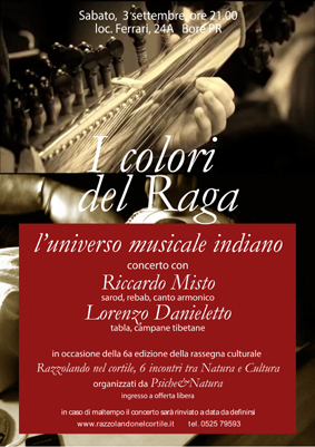 Una esplorazione dell’universo musicale indiano, mettendo in evidenza sia gli aspetti della melodia (Raga), sia quelli del ritmo(tabla), attraverso l’esecuzione di musica e brevi introduzioni e spiegazioni che permettono di avere una chiave di lettura di ciò che viene ascoltato.